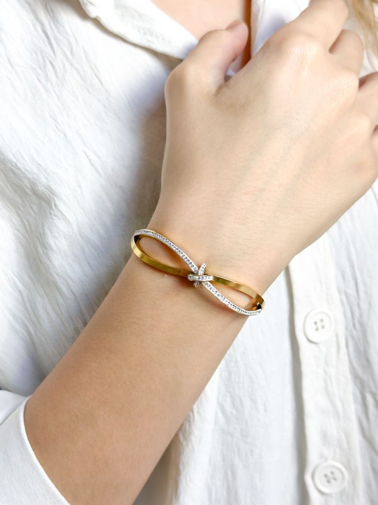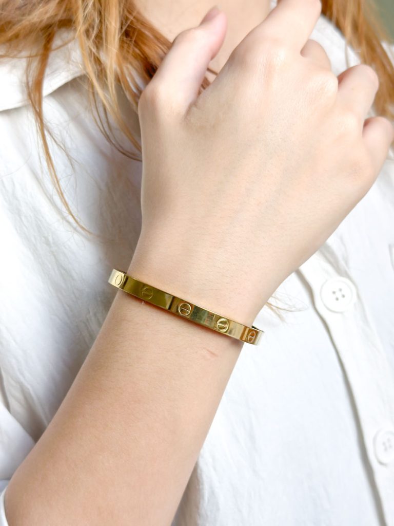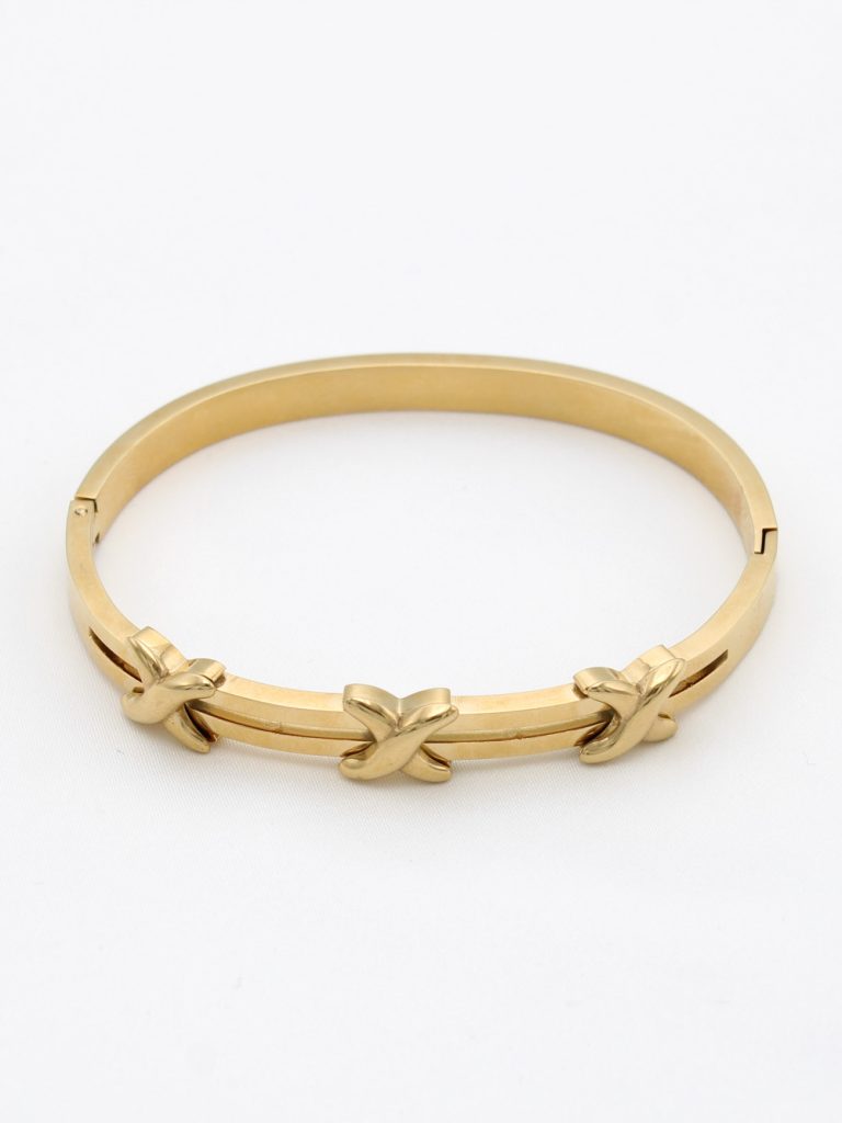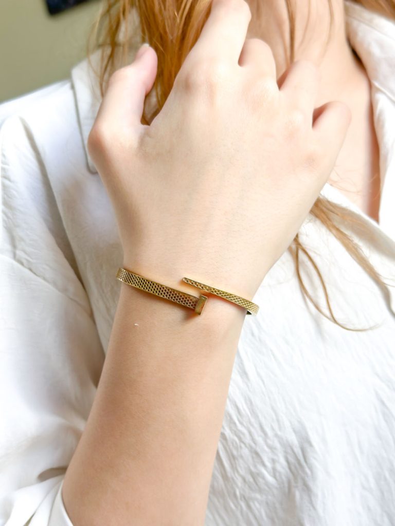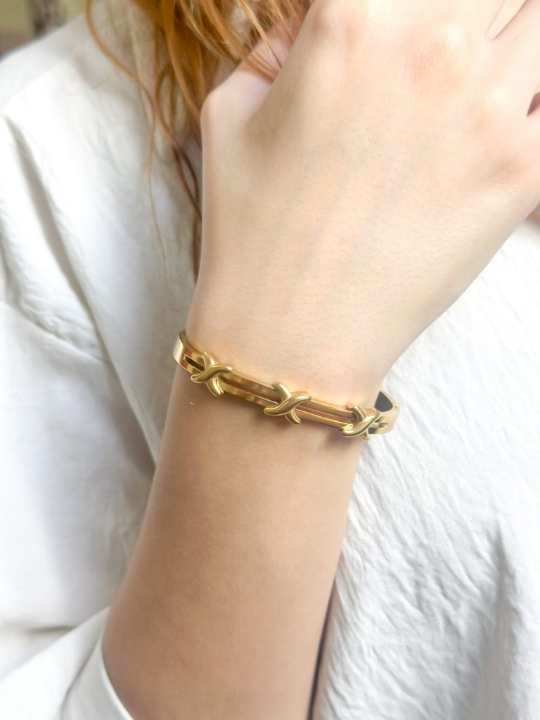 « Ce duo raffiné, composé d’un bracelet et d’une bague dorés, s’inspire de la beauté du trèfle porte-bonheur. Sa finition brillante et ses lignes pures en font un bijou à la fois romantique et sophistiqué. Symbole de féminité et d’harmonie, il apporte une note précieuse et lumineuse à votre style.