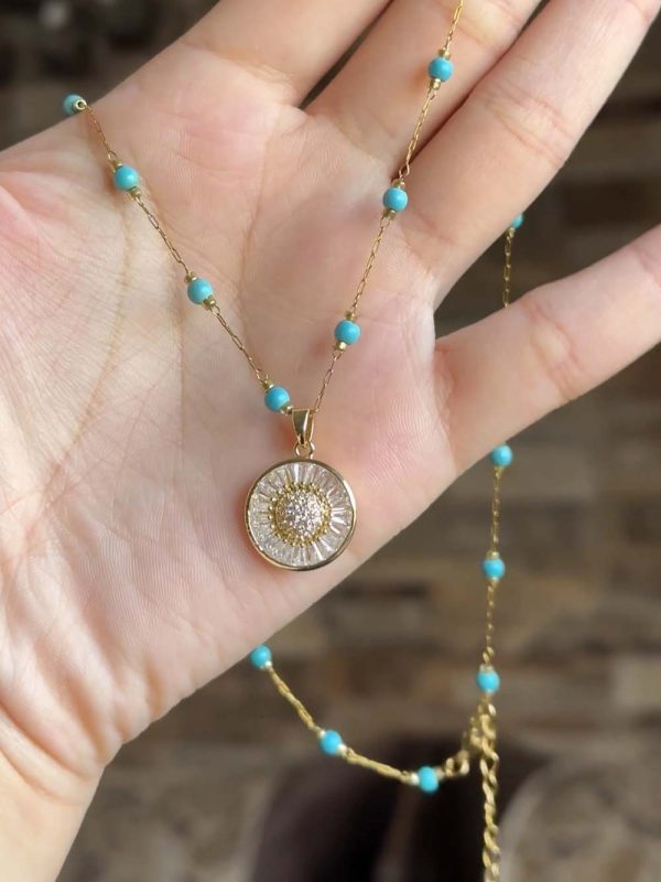 Ce collier en acier inoxydable allie finesse et modernité. Sa chaîne délicate est ponctuée de petites perles bleues, apportant une touche subtile de couleur et d’originalité. Le pendentif rond au centre ajoute une note intemporelle qui s’harmonise avec tous les styles. Grâce à sa conception résistante et élégante, ce bijou peut être porté au quotidien ou pour sublimer vos tenues lors d’occasions spéciales.