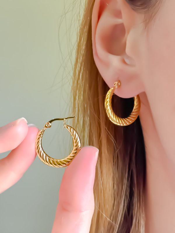 Créoles Texturées Torsadées : Boucles d’Oreilles Acier Inoxydable P011918