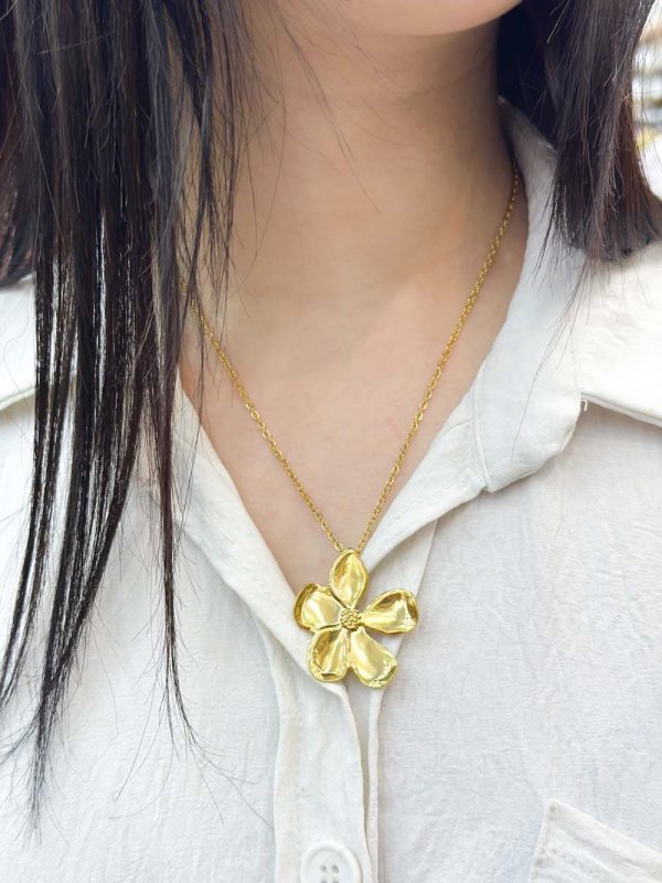 Collier raffiné en acier inoxydable avec un grand motif fleur, pour une touche féminine et sophistiquée.