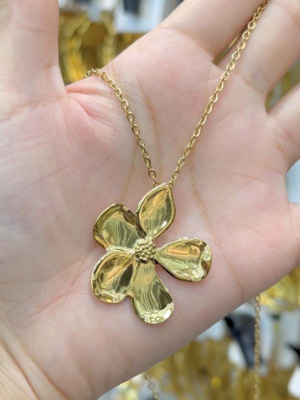 Ce collier se distingue par son grand motif fleur ????, symbole de beauté et de délicatesse. Réalisé en acier inoxydable de haute qualité, il résiste à la rouille et aux rayures, garantissant un éclat durable. Parfait pour sublimer vos tenues quotidiennes ou offrir un cadeau élégant et significatif, ce bijou apporte charme et sophistication à chaque instant.