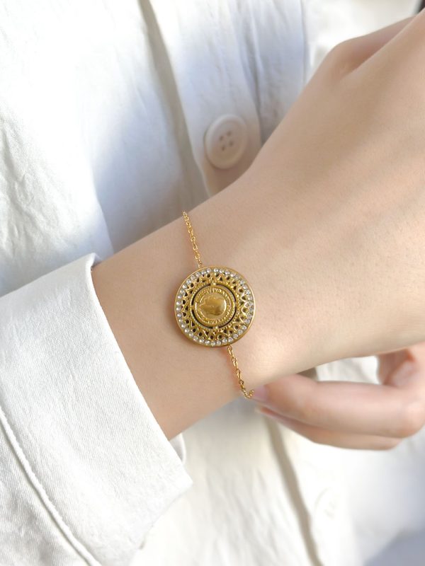 Une Gourmette délicate sublimée par un grand motif Louiza au style unique et raffiné.