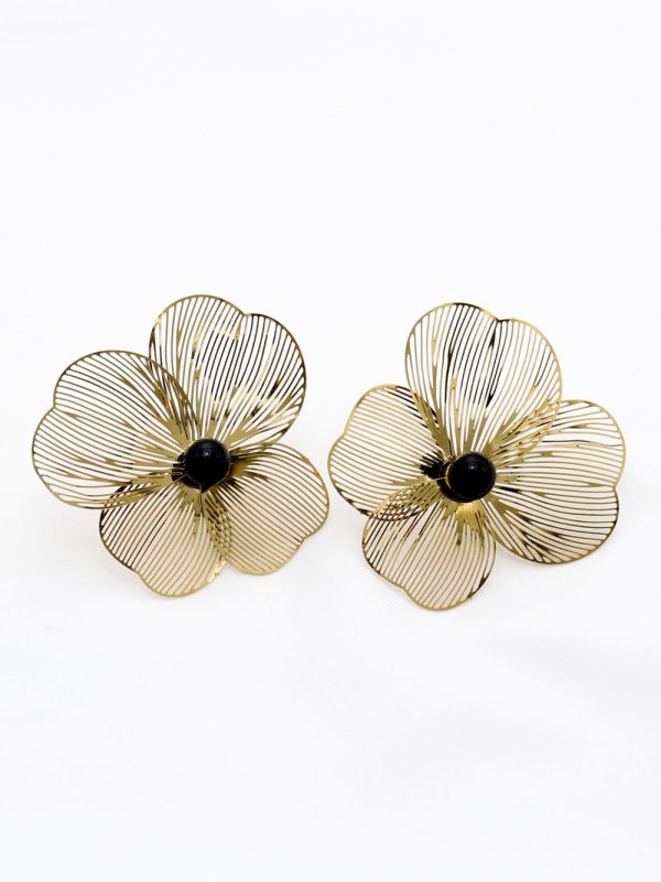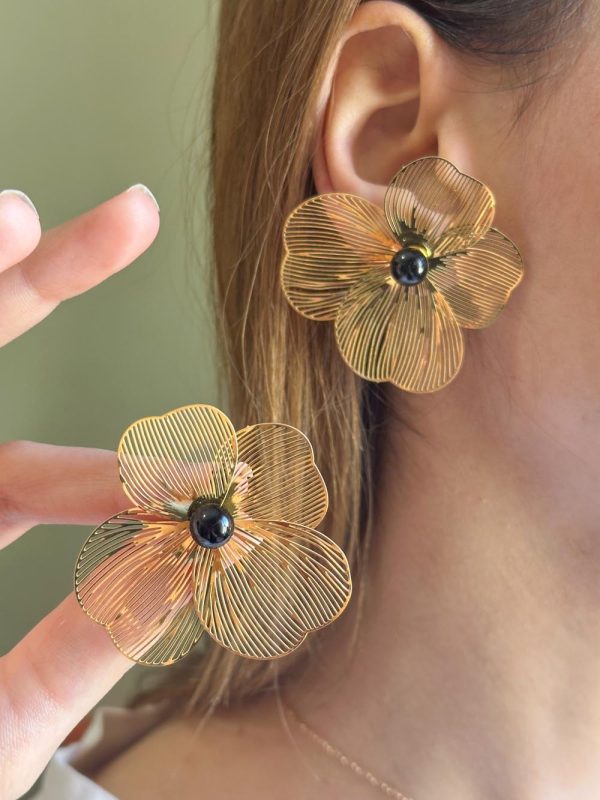Ces magnifiques boucles Flora se distinguent par leur grande fleur dorée nichée dans un perle noir brillant, symbolisant la féminité et la confiance. Le contraste entre les deux tons offre un rendu luxueux, idéal pour rehausser vos tenues de soirée ou vos looks élégants du quotidien. Un bijou qui attire les regards sans en faire trop.