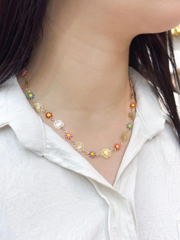 Ce collier floral multicolore évoque la beauté d’un jardin en pleine floraison. Chaque fleur, aux nuances éclatantes et harmonieuses, reflète la fraîcheur, la vitalité et la féminité. Réalisé en acier inoxydable, il allie résistance et raffinement, tout en conservant un éclat durable. Véritable pièce maîtresse, ce bijou illumine vos looks avec une touche romantique et festive, parfaite pour les journées ensoleillées ou les soirées spéciales.