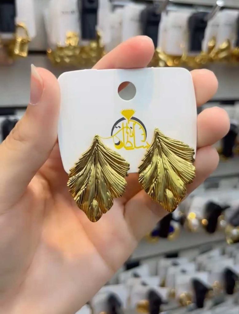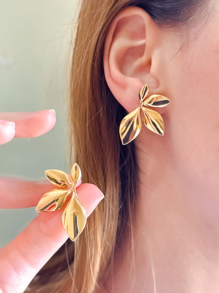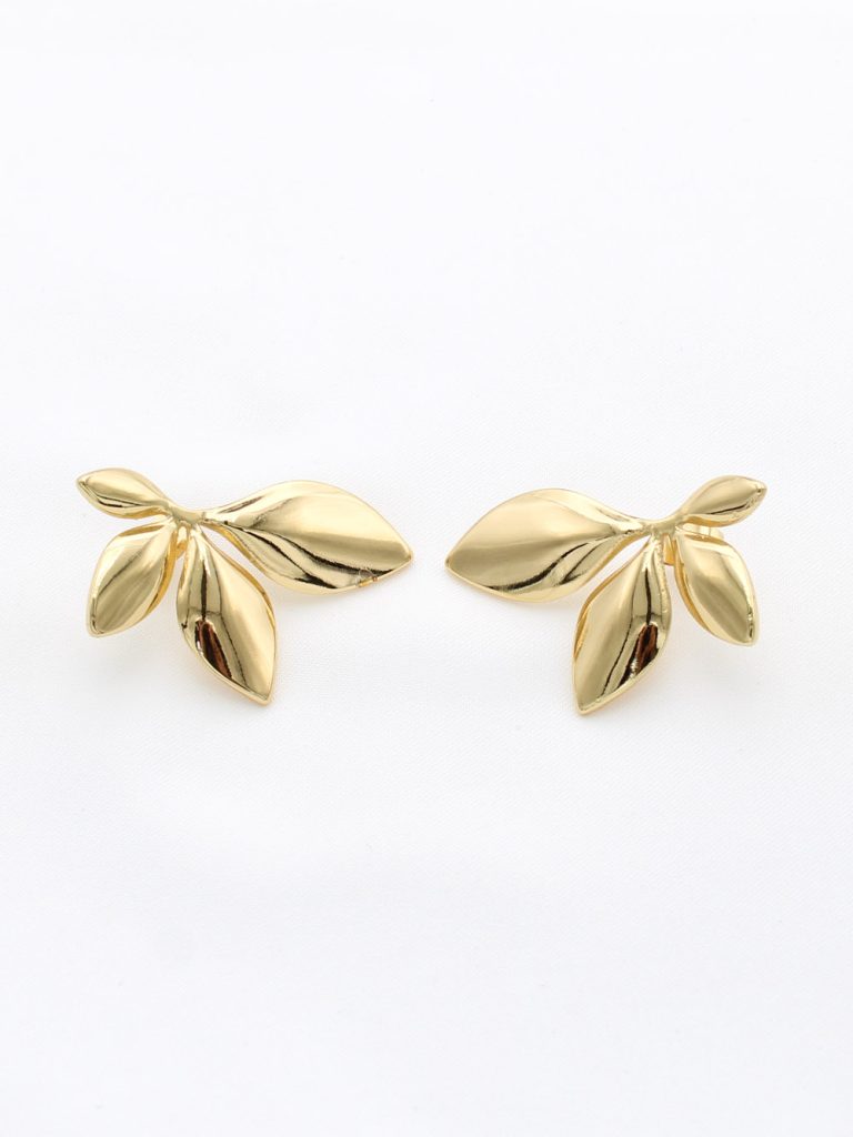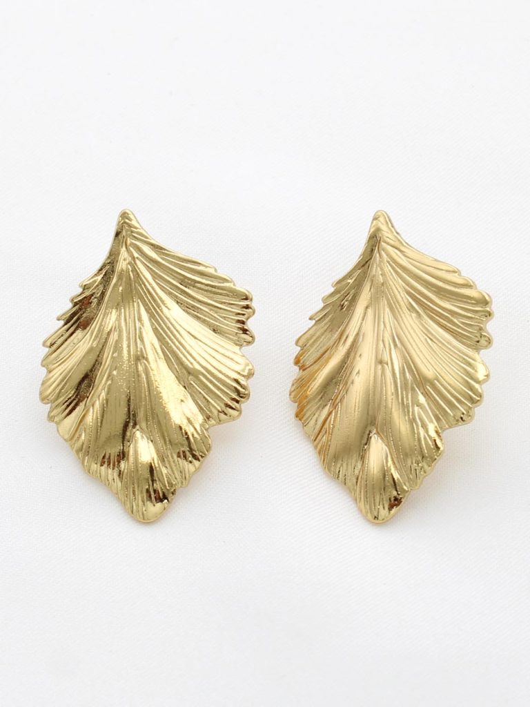 550 DABoucles d’oreilles dorées inspirées de la nature, en forme de feuille.