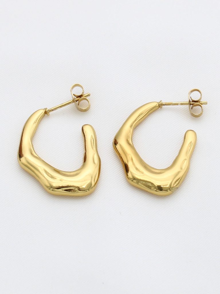 350 DABoucles d’oreilles dorées en forme rectangulaire, au design moderne et raffiné.