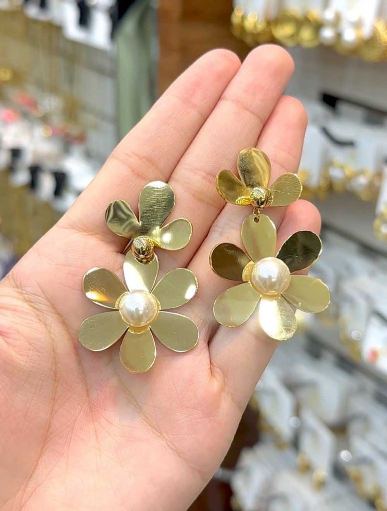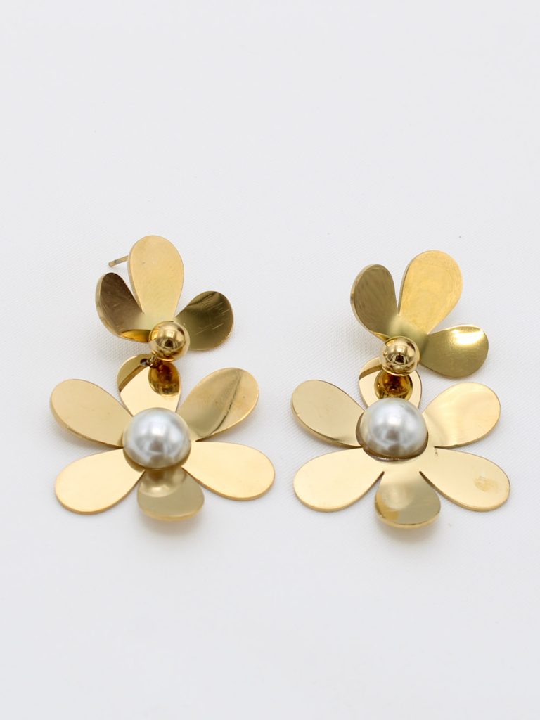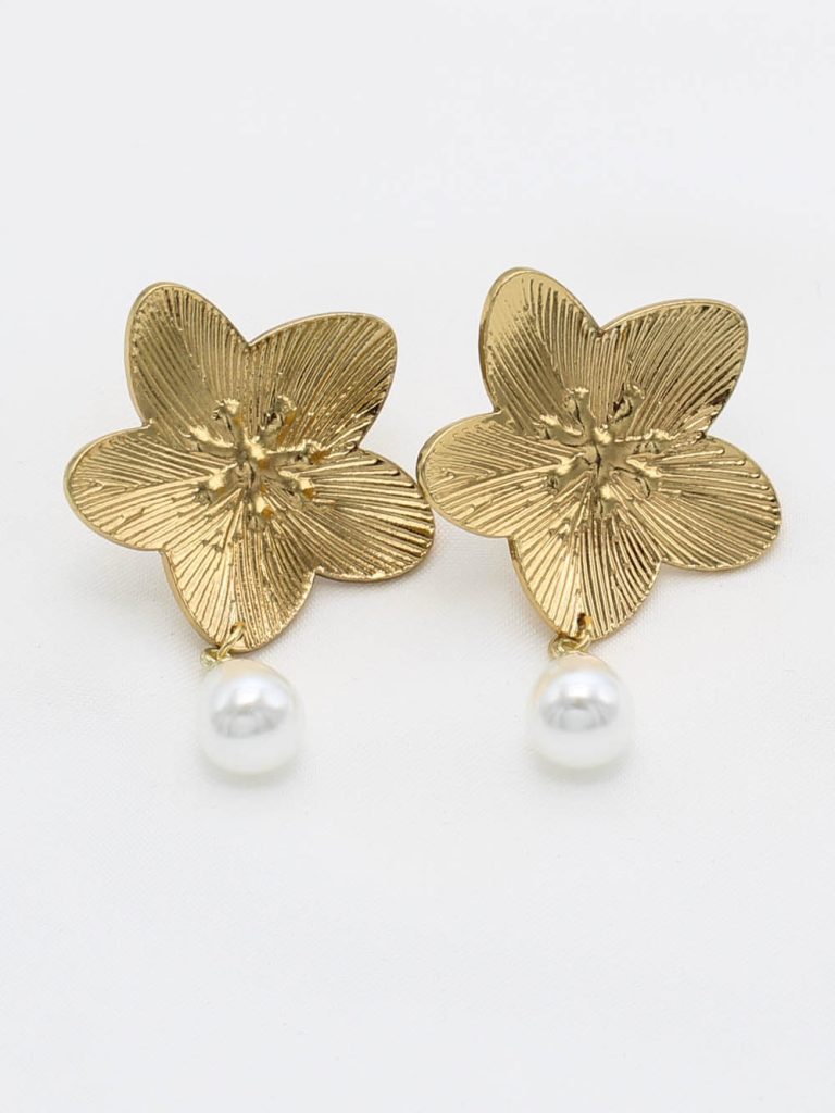 650 DABoucles d’oreilles florales au design raffiné, ornées d’une perle pendante qui ajoute un mouvement gracieux et élégant.