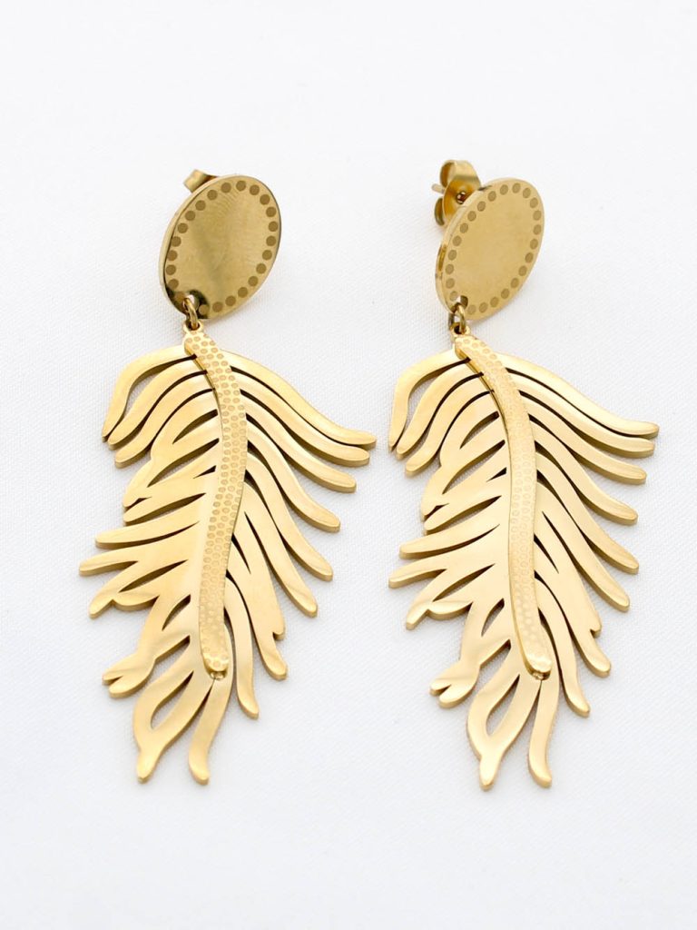 Boucles d’oreilles Feuille Élégante – Grand motif feuille en acier inoxydable P011988