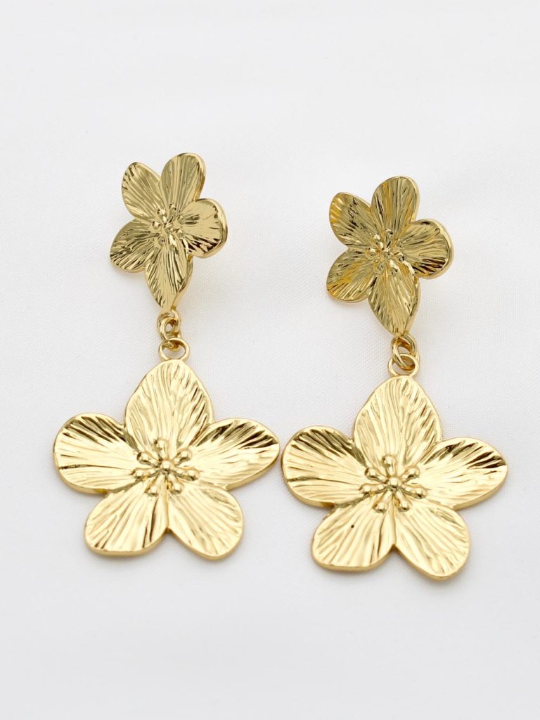750 DABoucles d’oreilles dorées à motif floral, au design féminin et lumineux. Un bijou raffiné pour toutes les occasions.