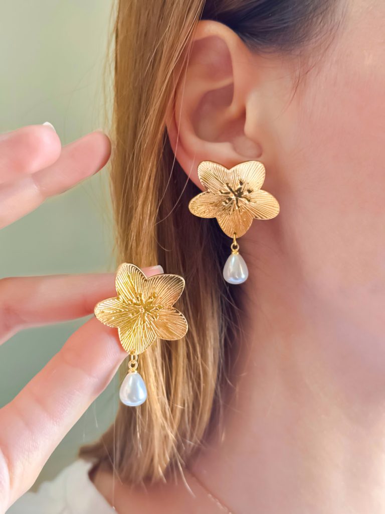 Boucles d’oreilles Fleur & Perle – Élégance Délicate P012627