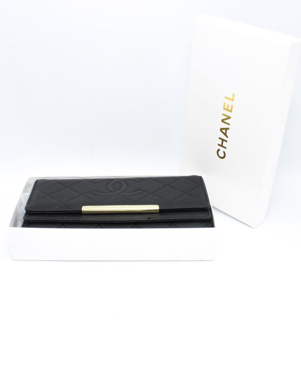NOIR Porte-Monnaie Chanel Paris – Copie Originale – Texture Grainée avec Boîte P012966