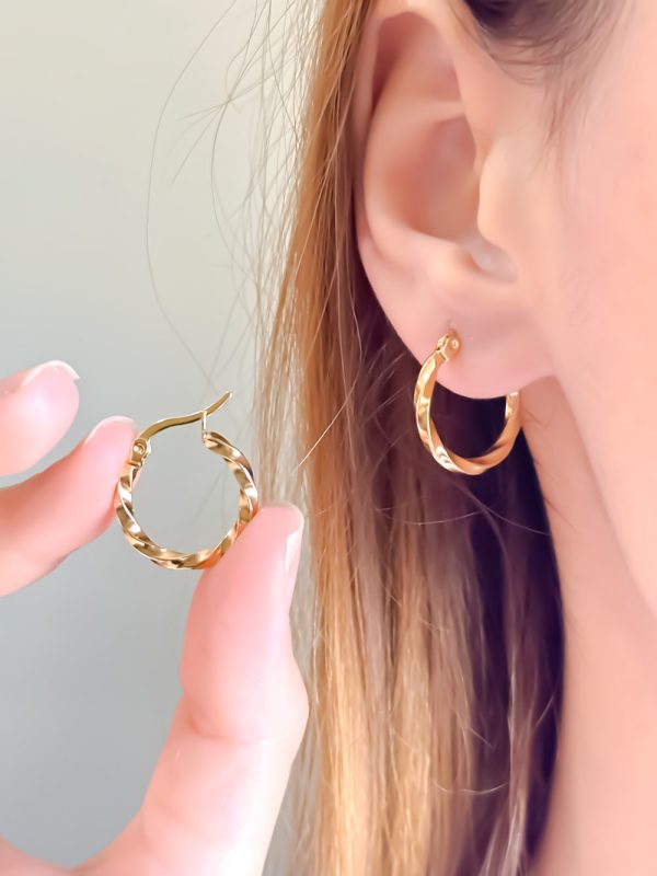 Le contraste entre le doré crée un effet lumineux raffiné. Ces boucles apportent une touche d’élégance moderne à vos tenues du quotidien.