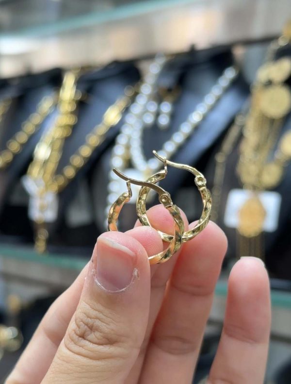 Créoles dorées ornées d’un cercle brillant.