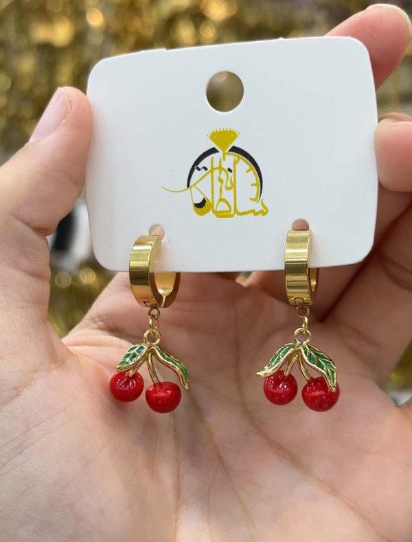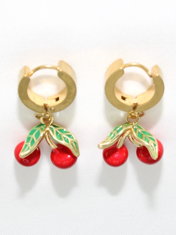 Boucles d’oreilles délicates au motif cerise en rouge et doré, un bijou frais et raffiné qui évoque la féminité et la douceur estivale.