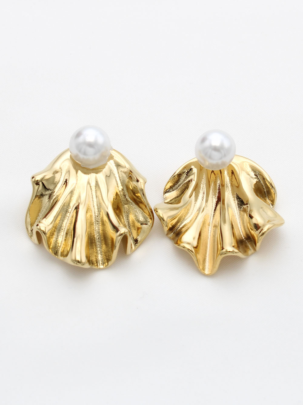 Boucles d’oreilles design feuille pliée – Acier inoxydable P009348