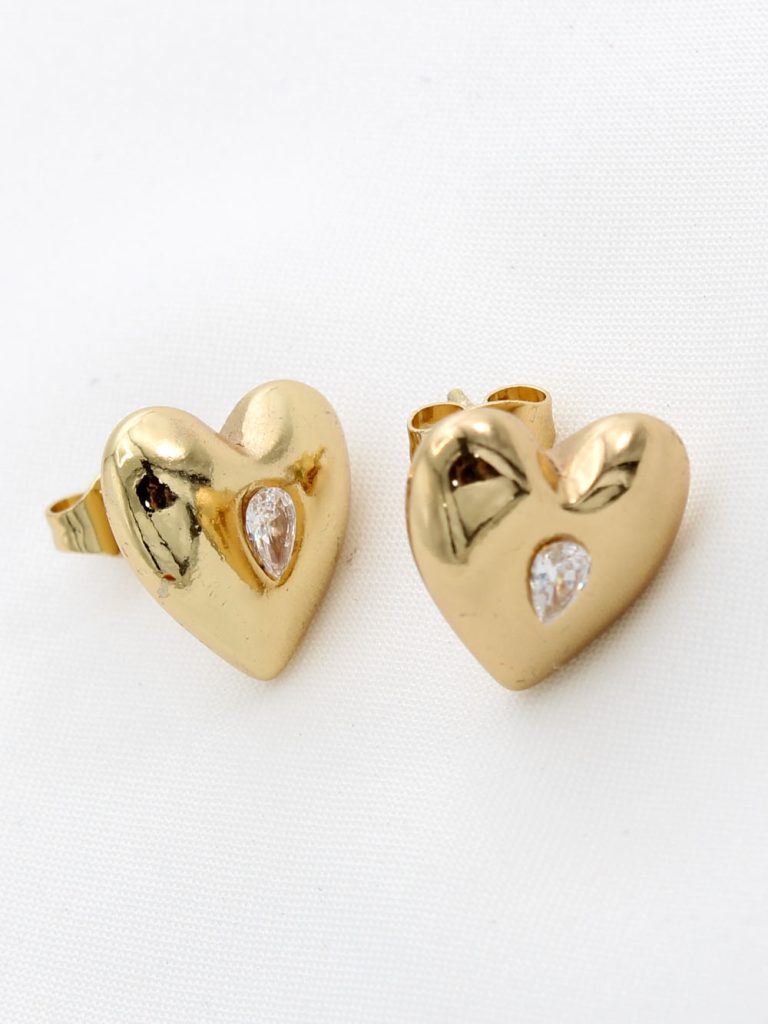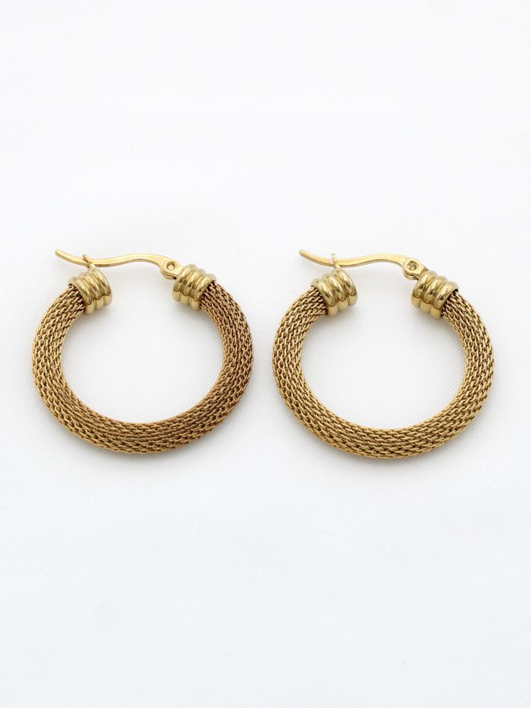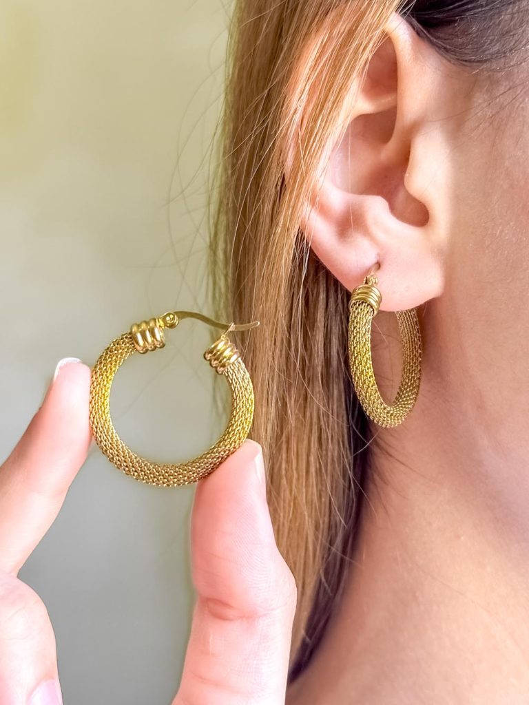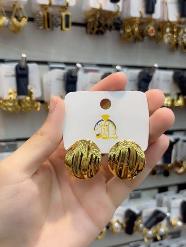 Élégantes boucles d’oreilles dorées au design bombé, parfaites pour illuminer votre visage avec une touche chic.