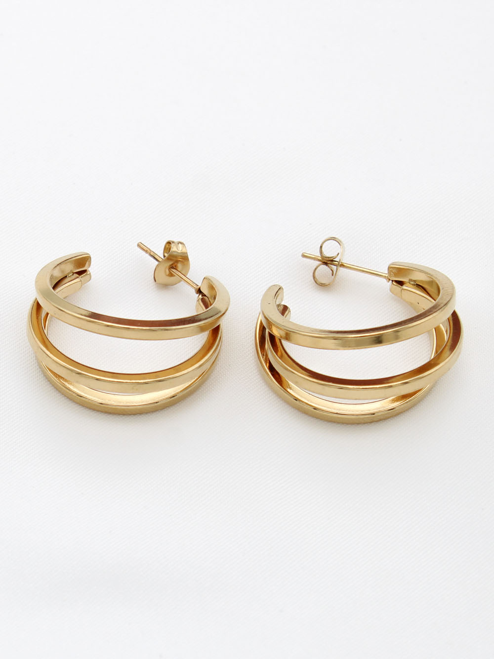 Un ensemble de mini-créoles en acier inoxydable, à la fois simples et raffinées, avec un léger motif clouté sur le pourtour.