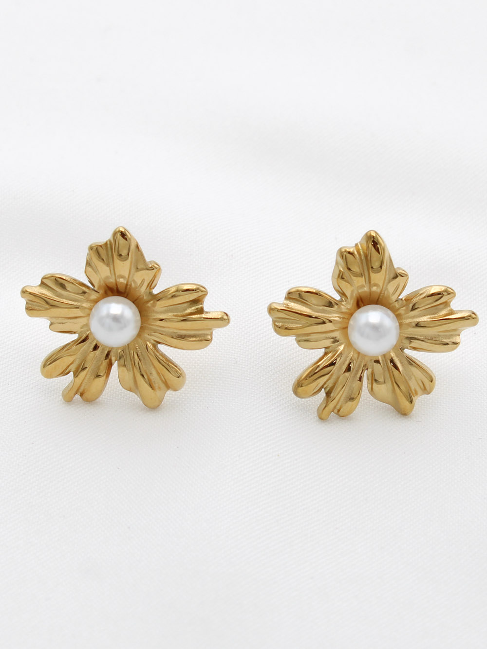 Boucles d’oreilles Perle Blanche – Petites boucles en acier inoxydable P011999