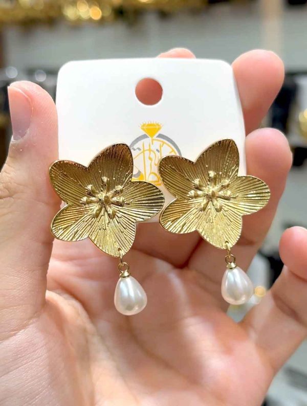 Boucles d’oreilles florales au design raffiné, ornées d’une perle pendante qui ajoute un mouvement gracieux et élégant.