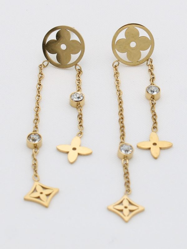 Boucles d’oreilles inspirées de la maison Louis Vuitton, au fini doré éclatant pour un look chic et intemporel.