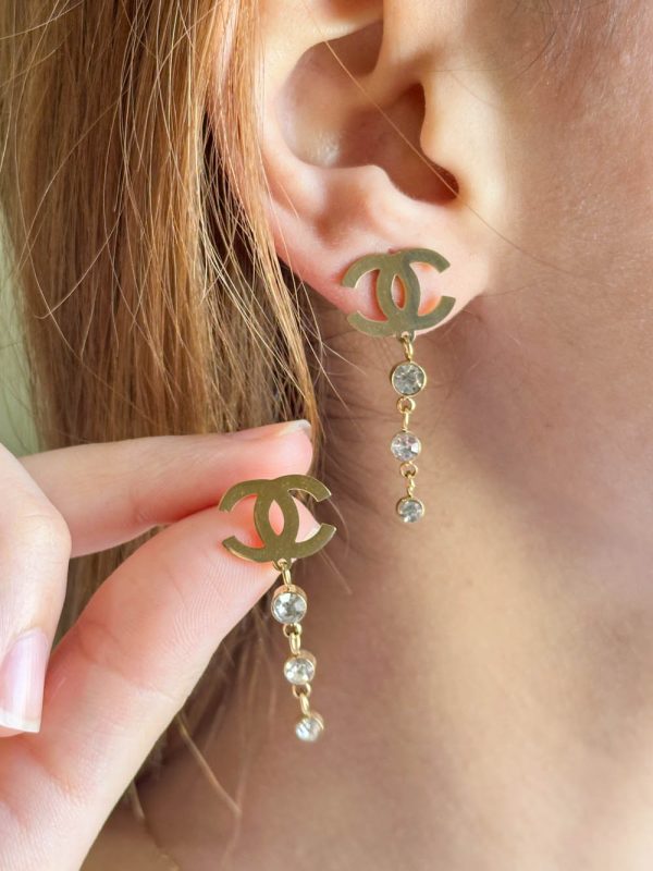 « Luxueuses et raffinées, ces boucles d’oreilles Chanel ornées de pierres argentées allient éclat et élégance intemporelle.