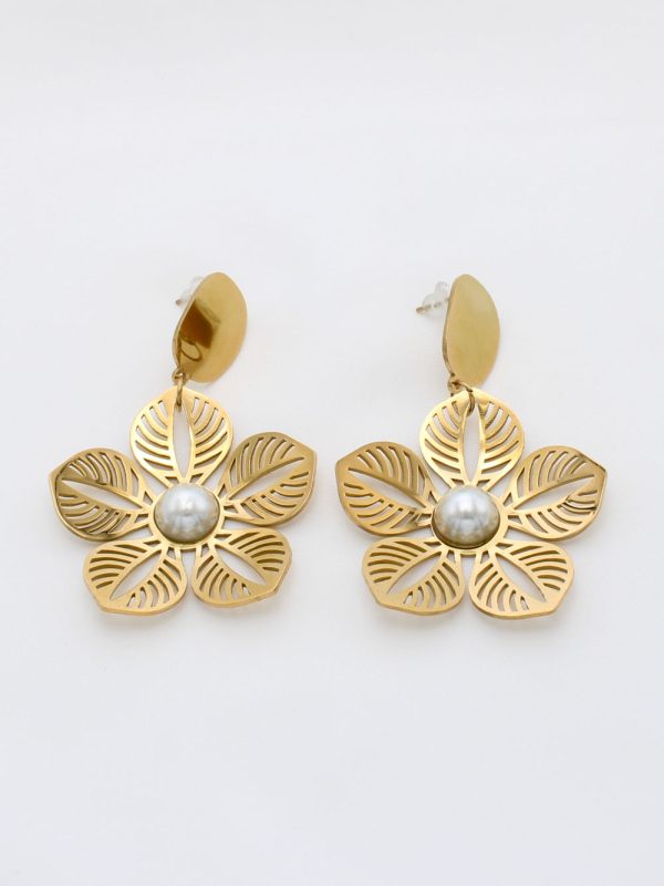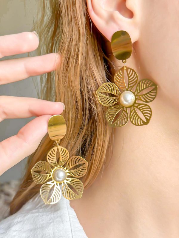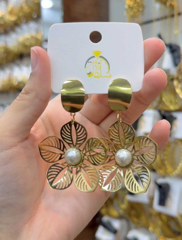 Boucles d’oreilles sophistiquées en forme de grande rose ornée d’une perle blanche en son centre, alliant grâce et raffinement.
