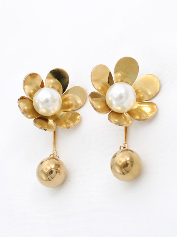 Boucles d’oreilles Rose Perlée – Fleur pendante avec perle blanche P011990