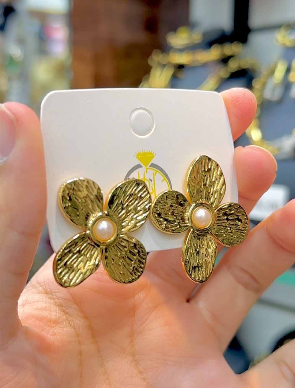 Boucles d’oreilles en forme de grande rose dorée, au style audacieux et féminin.
