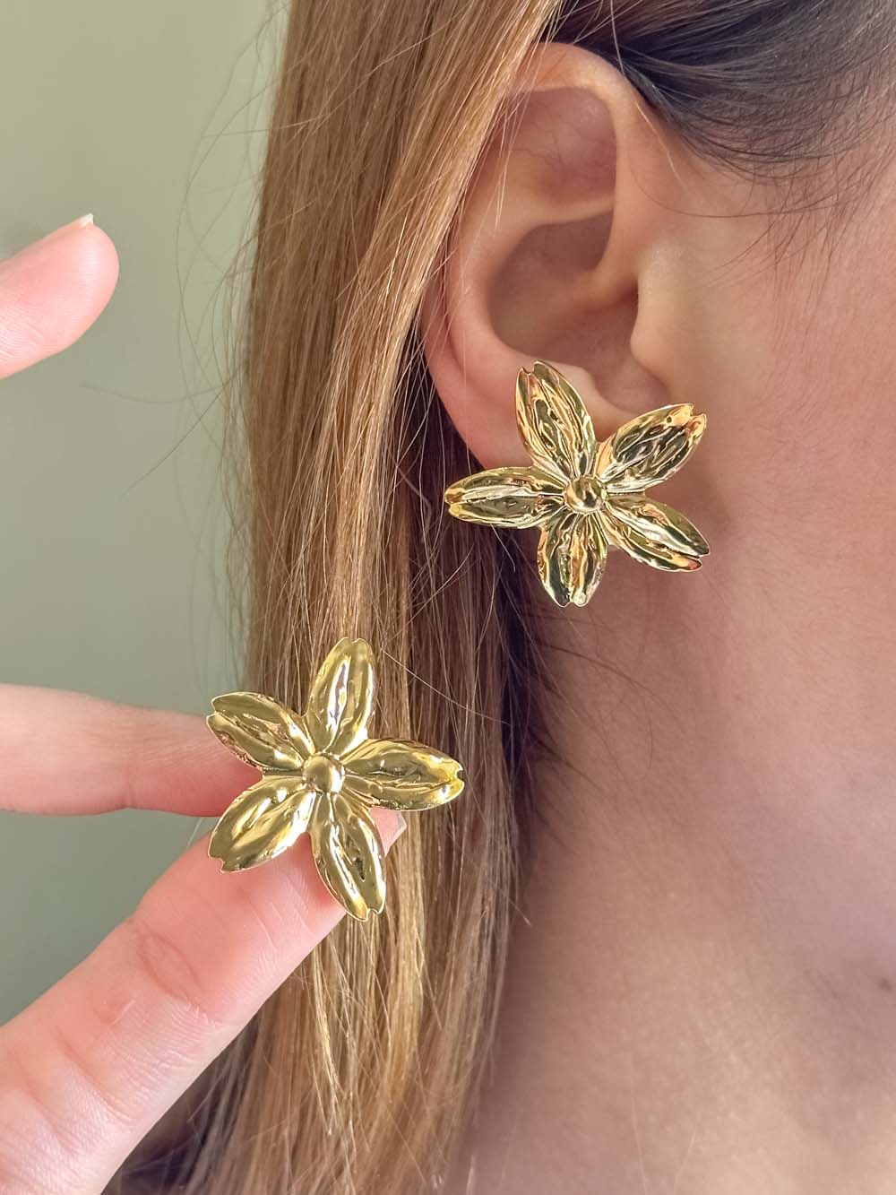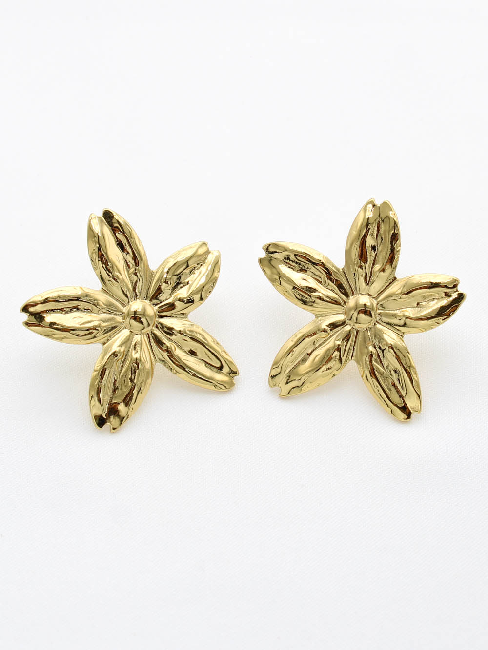 Boucles d’oreilles en forme de rose dorée, alliant éclat et élégance intemporelle.