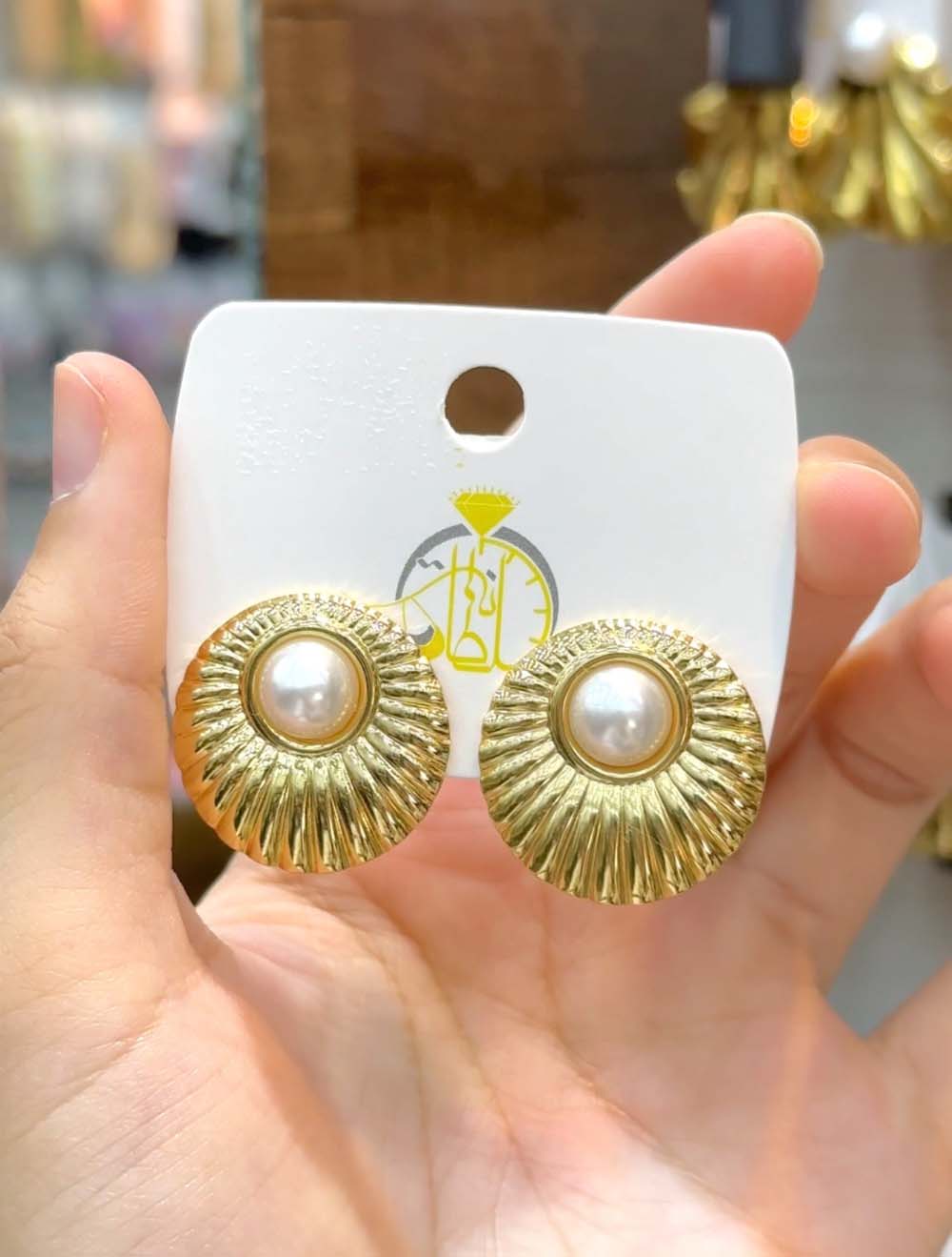 Boucles d’oreilles circulaires ornées d’une perle blanche au centre, mélange parfait entre pureté et élégance.