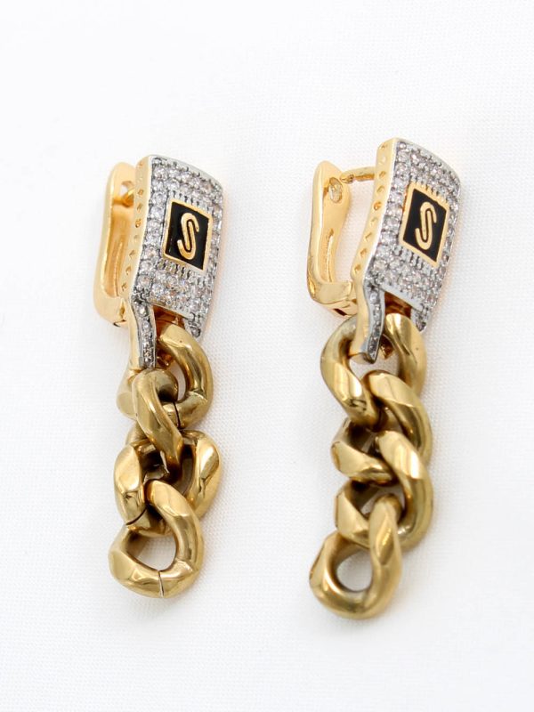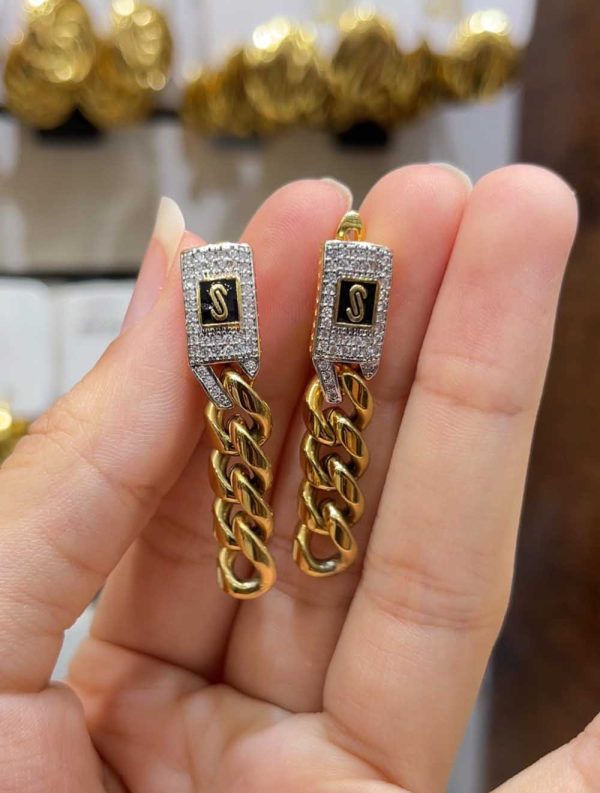Ces boucles MONACO en acier inoxydable doré, ornées d’une délicate chaîne pendante, offrent un style moderne et audacieux.