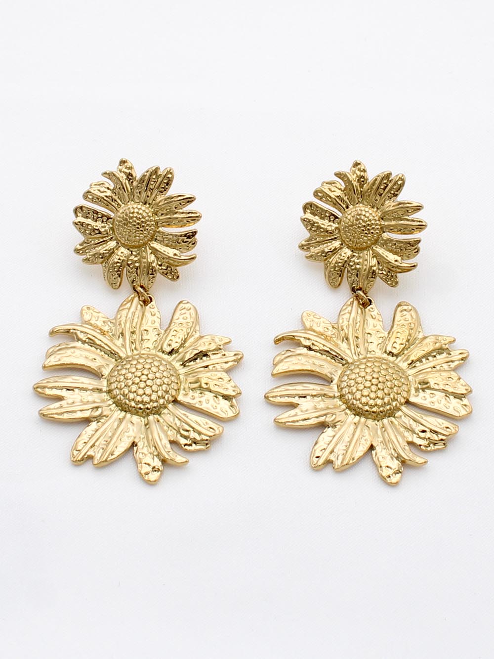 Boucles d’oreilles dorées à motif floral, au design féminin et lumineux. Un bijou raffiné pour toutes les occasions.