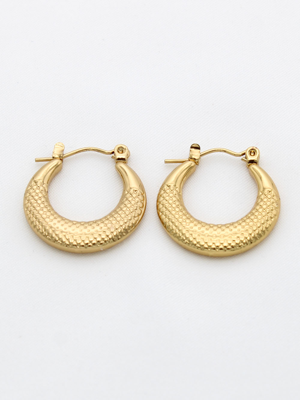 Boucles créoles dorées à texture travaillée, chic et faciles à porter.
