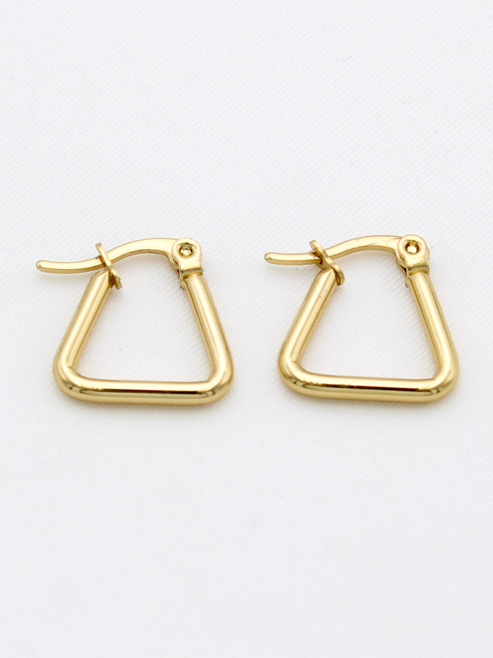Petites boucles argentées en forme de triangle au design géométrique.