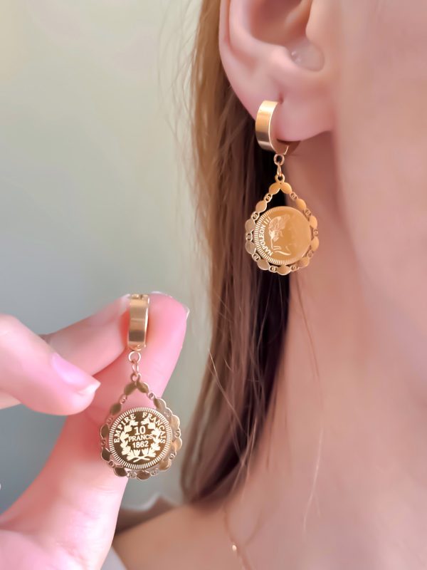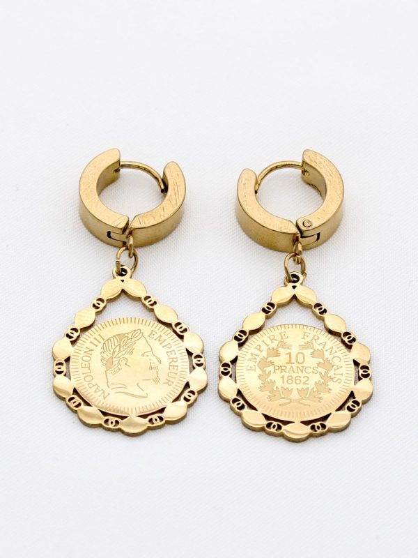 Exprimez votre personnalité avec les boucles d’oreilles. Ce modèle audacieux présente une créole de taille moyenne d’où pendent trois médaillons de formes différentes (rond, ovale, ou texturé) ajoutant un mouvement et une richesse visuelle. La finition texturée de chaque pendentif reflète la lumière d’une manière unique, offrant un éclat chaleureux. L’acier inoxydable garantit que ce bijou lourd d’apparence reste confortable et résistant à l’usure quotidienne, ce qui en fait un excellent investissement mode.