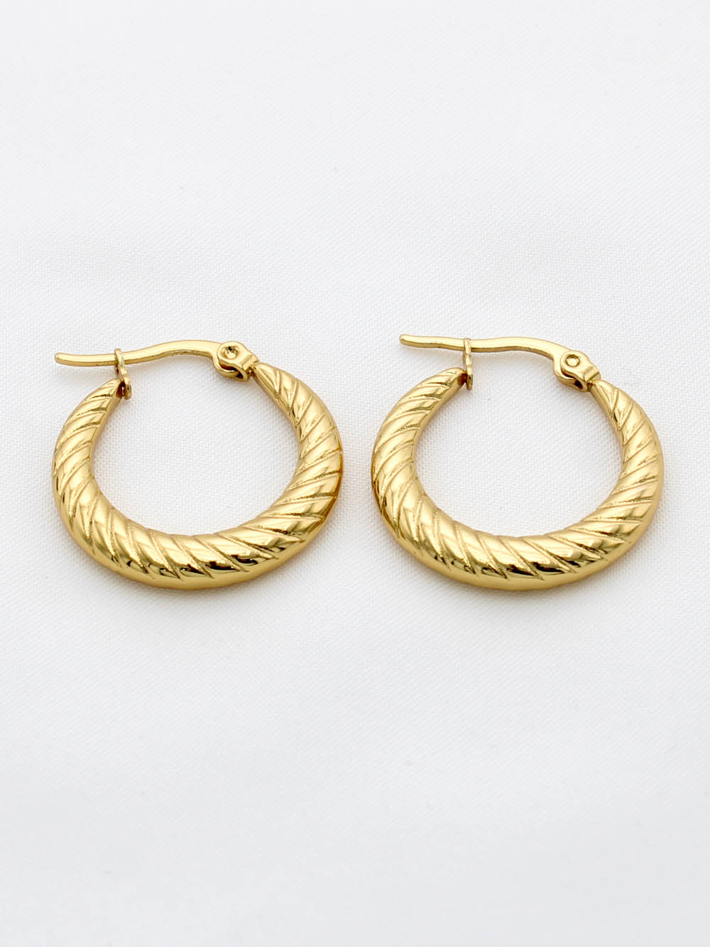 Créoles Texturées Torsadées : Boucles d’Oreilles Acier Inoxydable P011918