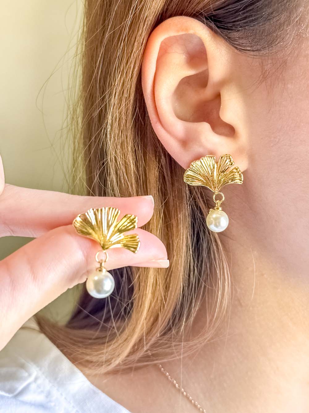 « Ces boucles Feuille Perlée reflètent la délicatesse de la nature et la pureté de la perle.