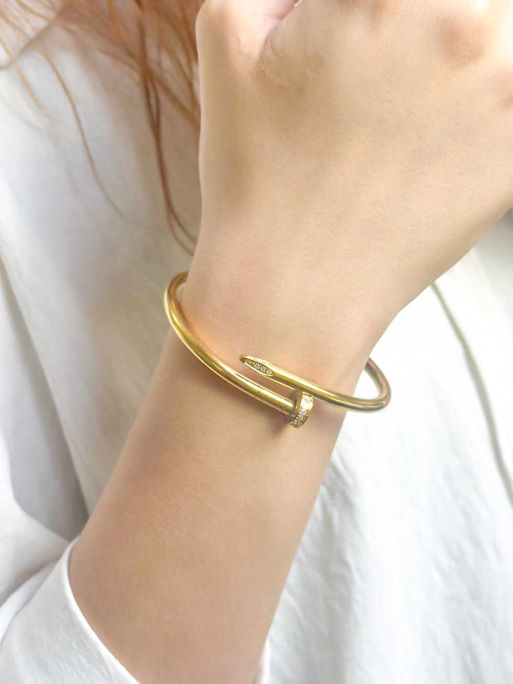 Un bracelet audacieux au design clou emblématique, symbole d’élégance et de force.