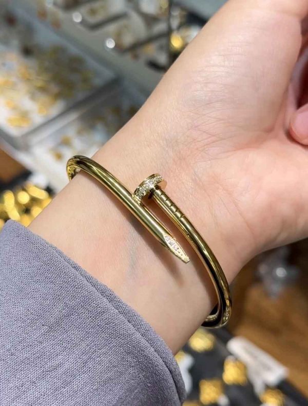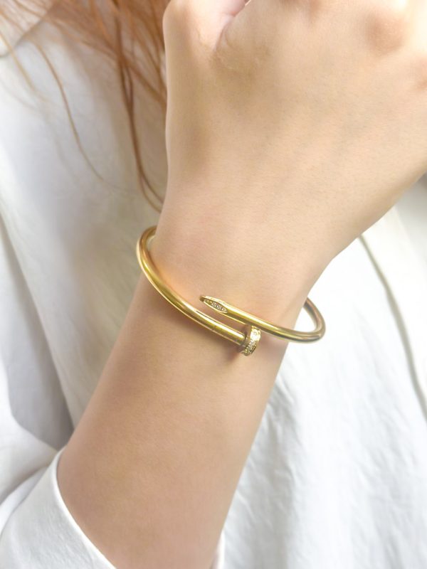 Le bracelet Cartier Clou incarne la beauté de la simplicité moderne. Son design inspiré du clou, à la fois minimaliste et sophistiqué, traduit une personnalité affirmée et audacieuse. Fait pour les femmes qui osent se démarquer, ce bijou séduit par son éclat raffiné et sa finition soyeuse. Parfait seul ou combiné avec d’autres pièces, il apporte une touche d’assurance à chaque geste.