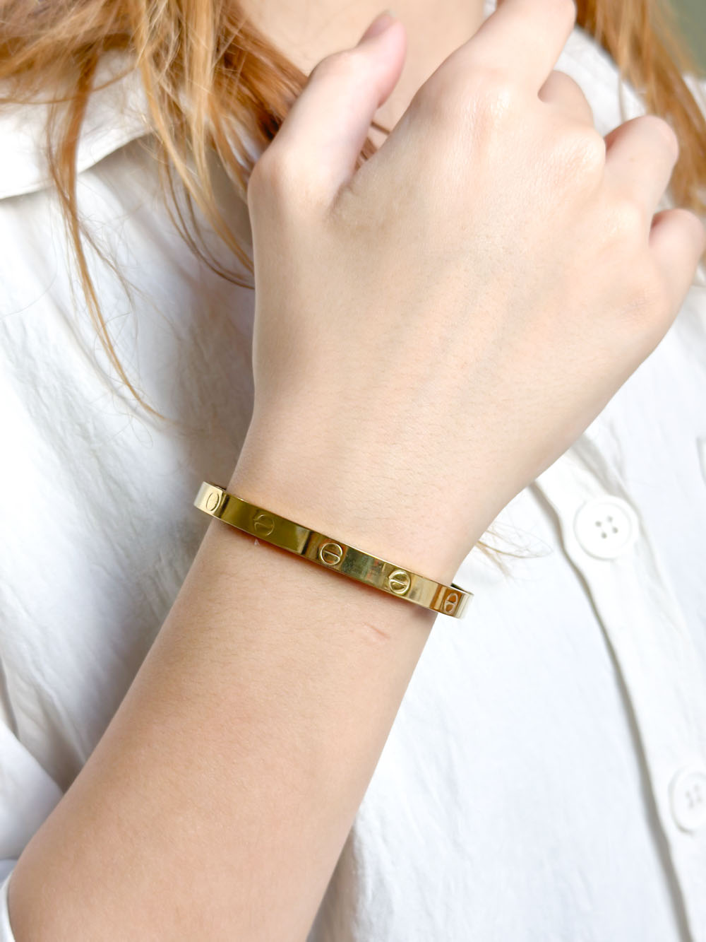 Version lisse du bracelet Love, tout en élégance et sobriété.