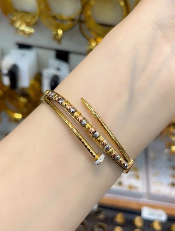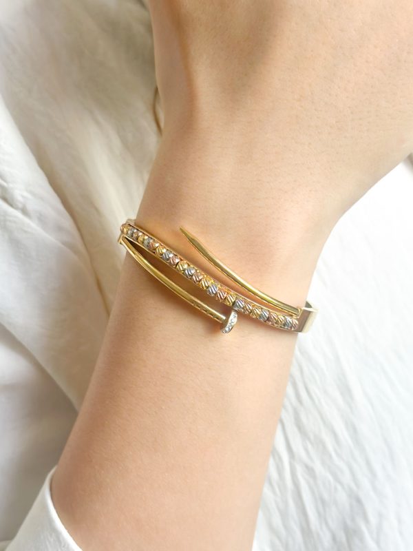 Le Cartier Clou Moderne réinvente le concept du clou avec une touche contemporaine et minimaliste. Son design fluide épouse le poignet avec élégance, offrant une allure urbaine et sophistiquée. Ce bijou allie le caractère brut du métal à la douceur des lignes arrondies, créant une harmonie parfaite entre puissance et délicatesse.