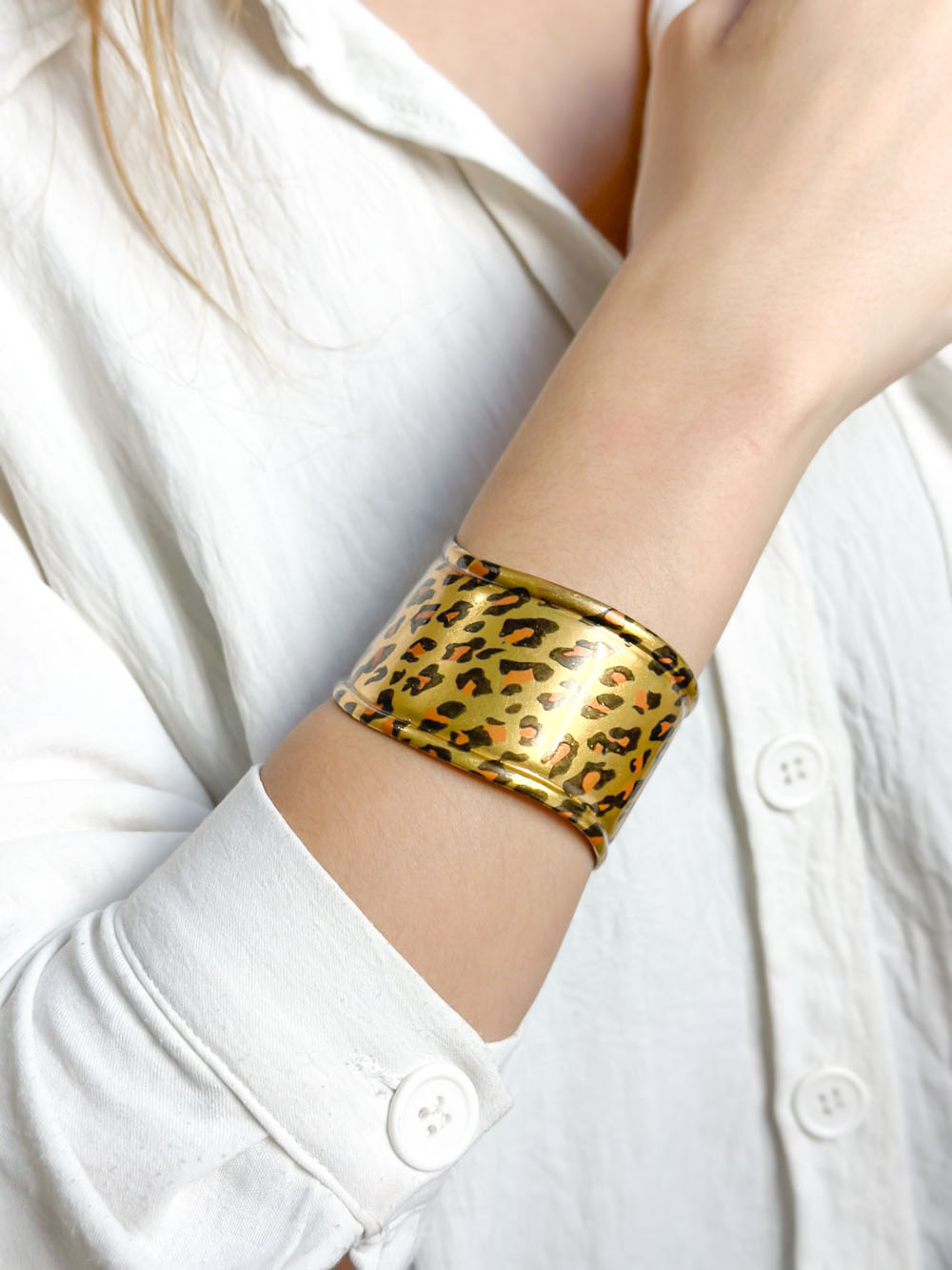 Manchette à motif léopard, alliance parfaite entre style sauvage et élégance.