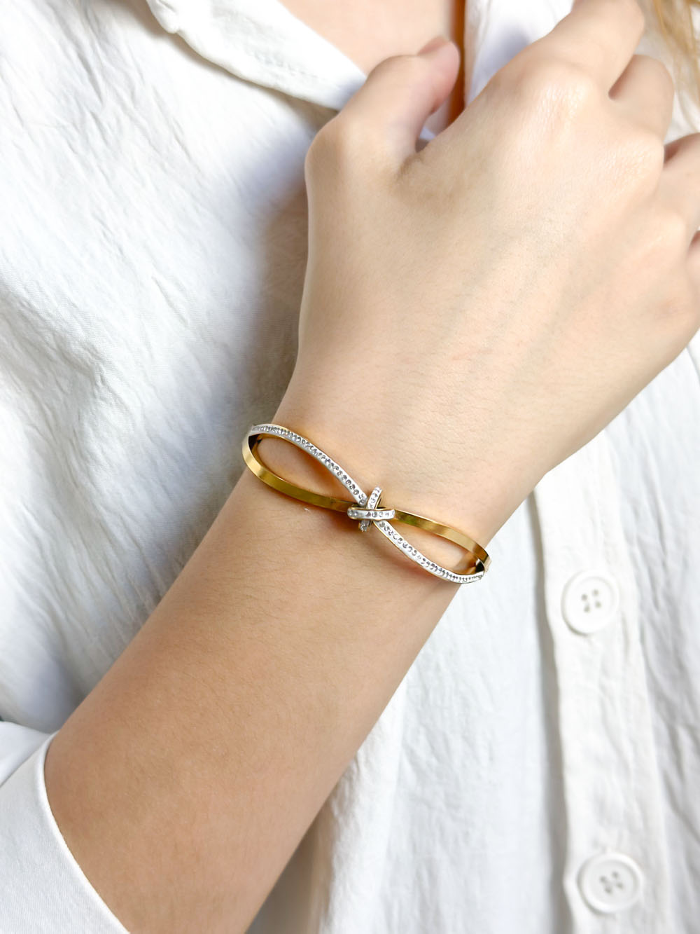 Bracelet raffiné en forme de nœud, symbole de féminité et de douceur.