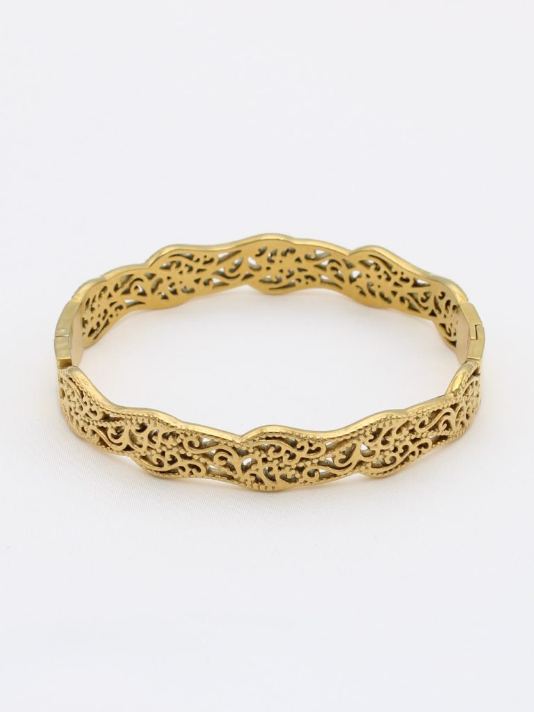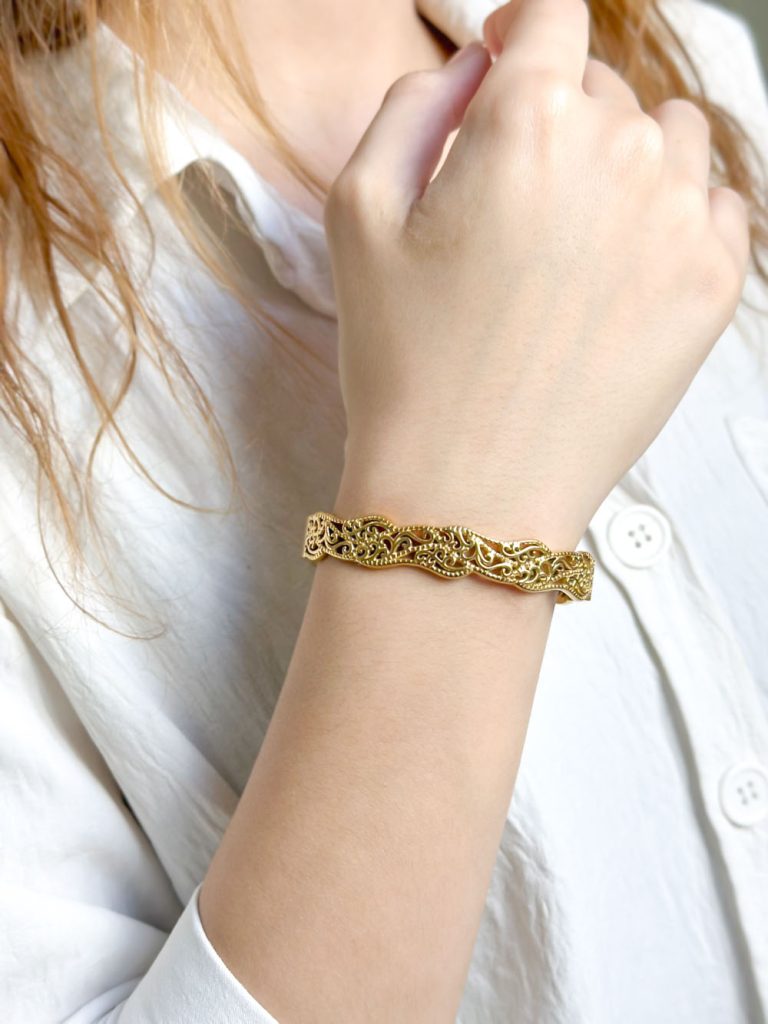 Ce bracelet en forme de nœud incarne la grâce et la délicatesse. Son design courbé et fluide évoque l’union et la légèreté. La finition brillante reflète subtilement la lumière, créant un éclat tendre au poignet. Idéal pour les femmes qui recherchent un bijou simple, romantique et raffiné à la fois. Un intemporel qui s’adapte à tous les styles avec élégance.