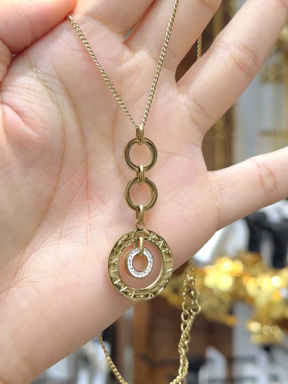 Ce collier en acier inoxydable séduit par son design moderne et sophistiqué. Son pendentif unique est formé de trois anneaux délicatement suspendus, créant un jeu de mouvements subtil et raffiné. Inspiré de l’élégance intemporelle des bijoux de luxe, il apporte une touche chic et contemporaine à toutes vos tenues. Résistant et polyvalent, il peut être porté aussi bien au quotidien que lors d’occasions spéciales.