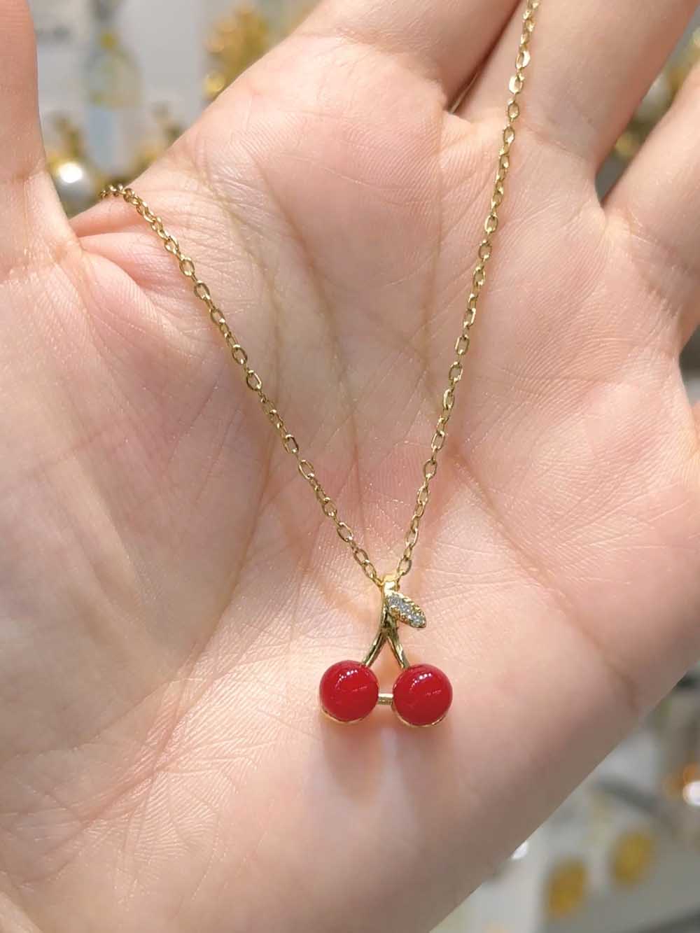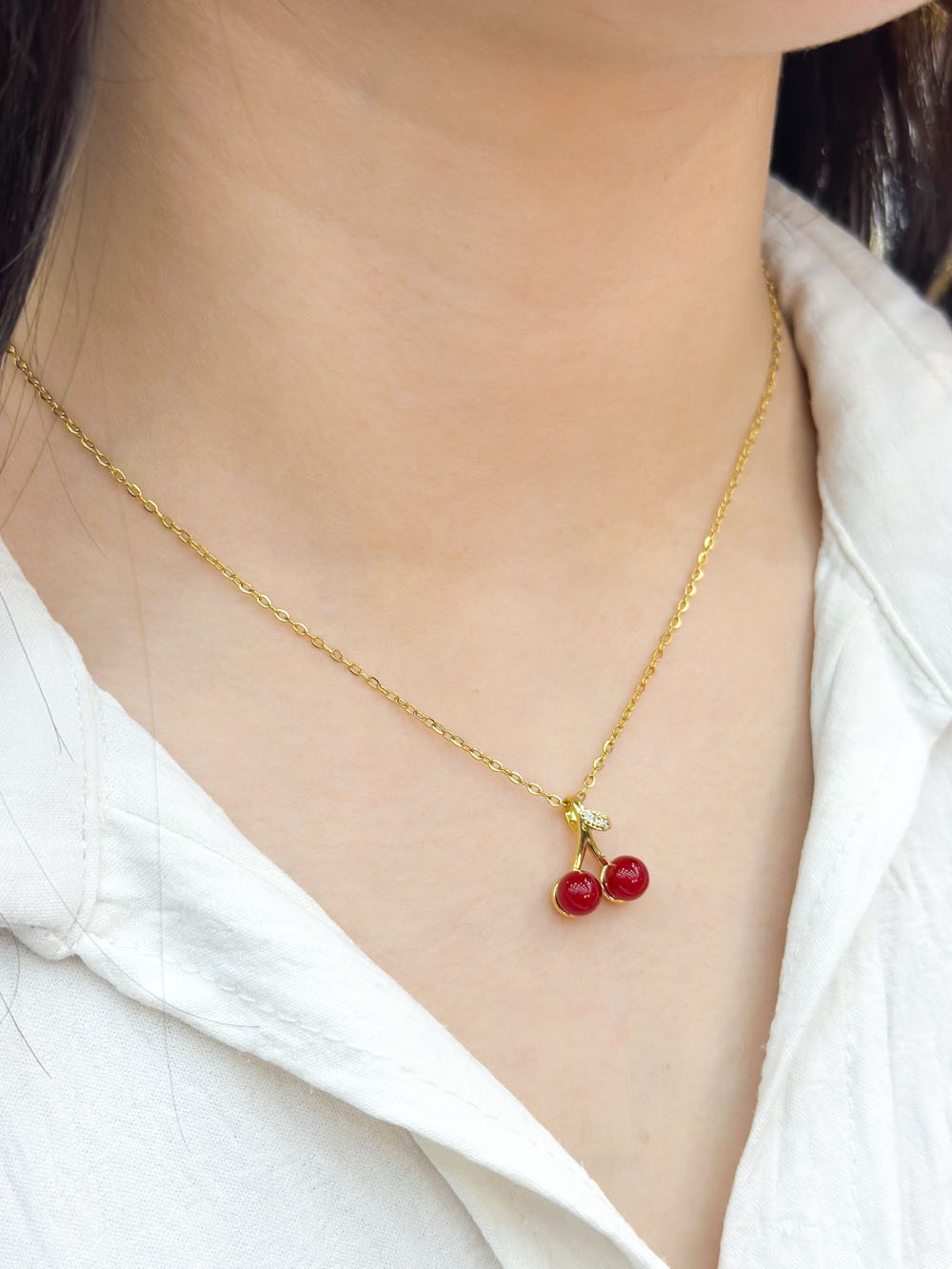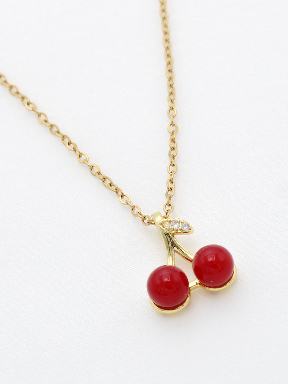 Ajoutez une touche de fantaisie fruitée à votre look avec ce délicat collier à motif de cerises. Conçu en acier inoxydable durable, ce bijou ne ternira pas et est parfait pour un usage quotidien.