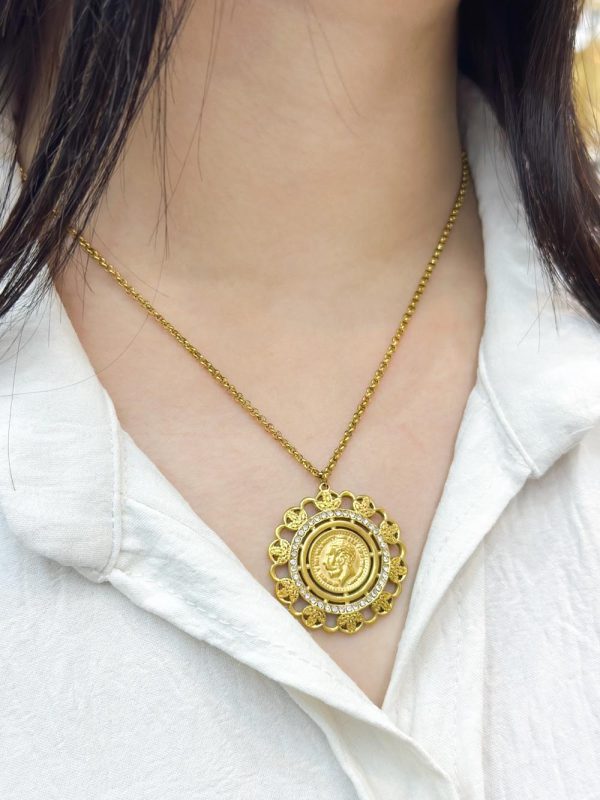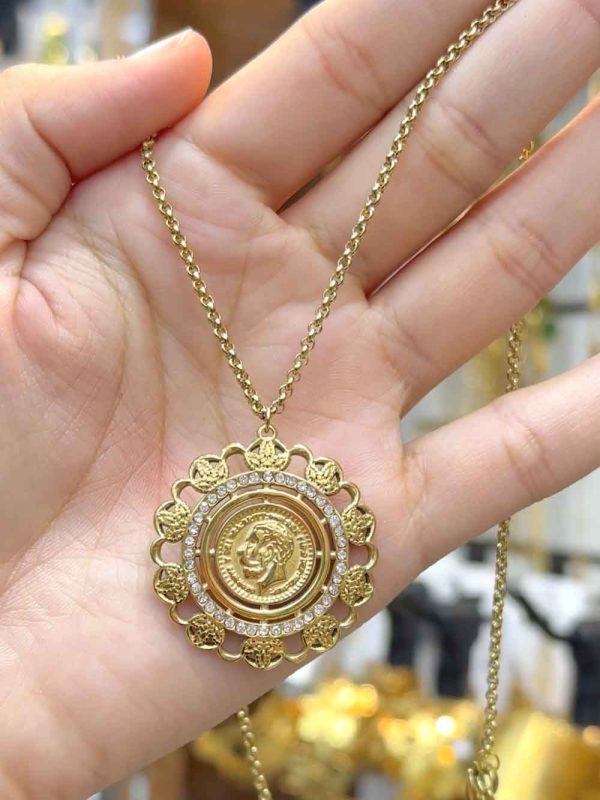 Collier élégant en acier inoxydable avec un pendentif motif Louiza, pour un style raffiné et moderne.