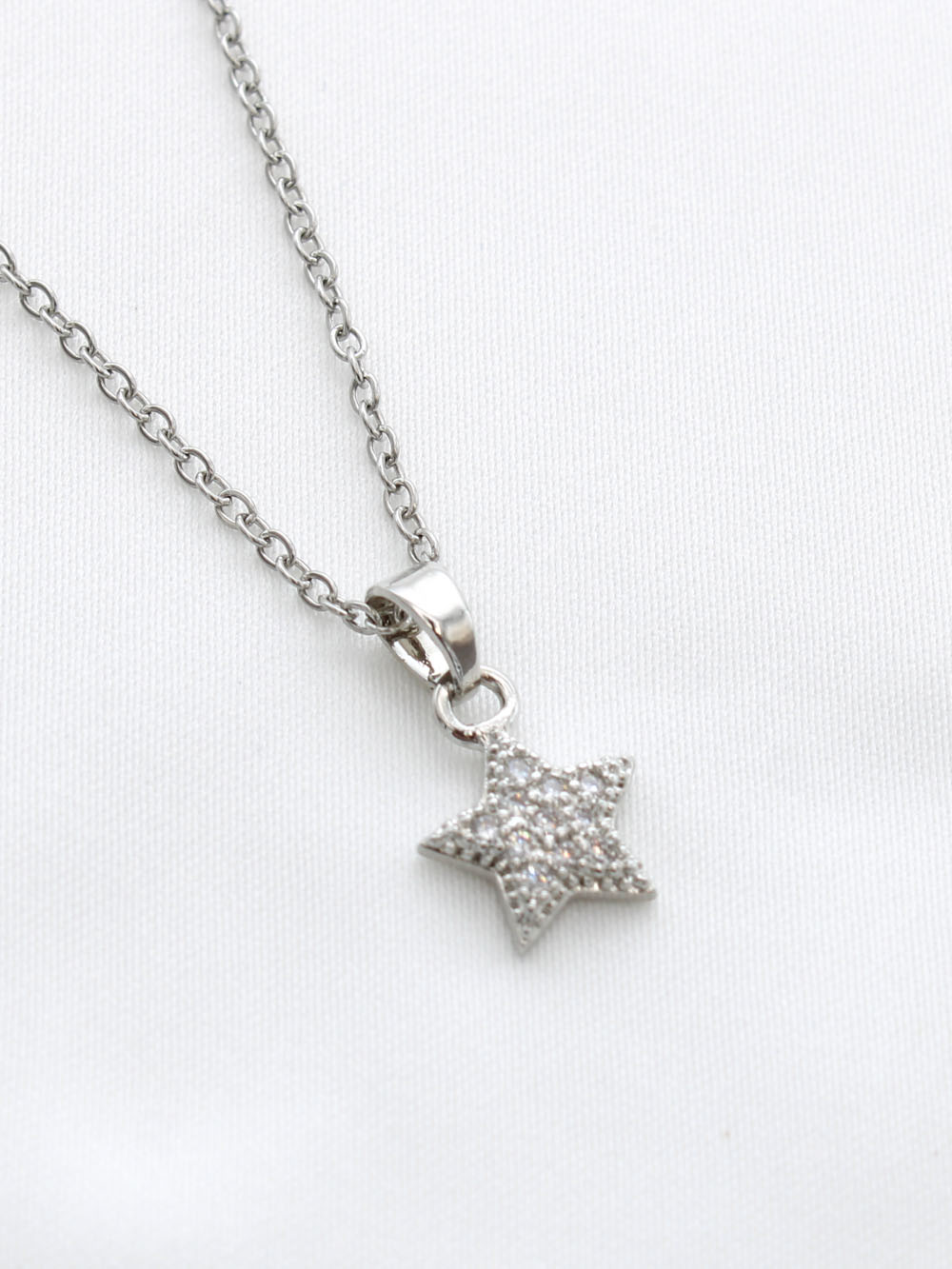 Collier argenté en acier inoxydable avec petite étoile P011870