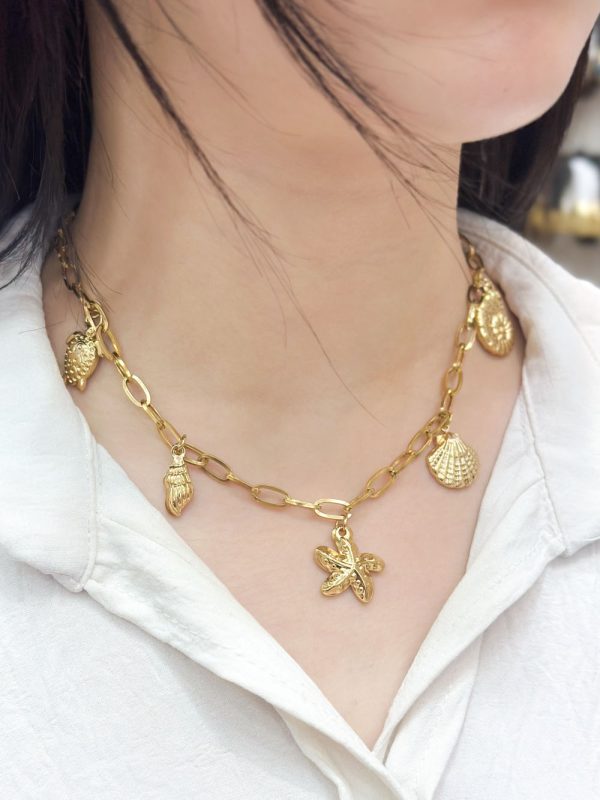 Collier Bibelot en acier inoxydable, décoré de motifs marins variés pour un style estival et raffiné.