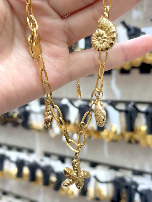 Ce collier Bibelot se distingue par ses multiples motifs marins, inspirés de l’univers de la mer, apportant fraîcheur et élégance à votre tenue. Confectionné en acier inoxydable de haute qualité, il résiste à la rouille et aux rayures, garantissant un bijou durable et raffiné. Parfait pour compléter vos looks estivaux ou offrir un cadeau original, ce collier évoque charme, sophistication et esprit marin à chaque instant.